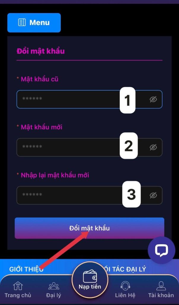 B4. Click vào dòng Mật khẩu cũ điền mật khẩu cũ (******), Sau đó bạn nhập “mật khẩu mới” và “xác nhận mật khẩu mới“. Sau đó click “Đổi mật khẩu” để hoàn tất việc đổi mật khẩu Sbobet